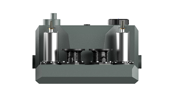 地下負一層的衛生間、茶水吧臺和洗衣房,使用一臺標準渦流雙泵解決,可滿足多空間同時排污。雙泵系統,一用一備,針對大流量洗衣機長時排污,也能穩定運行。