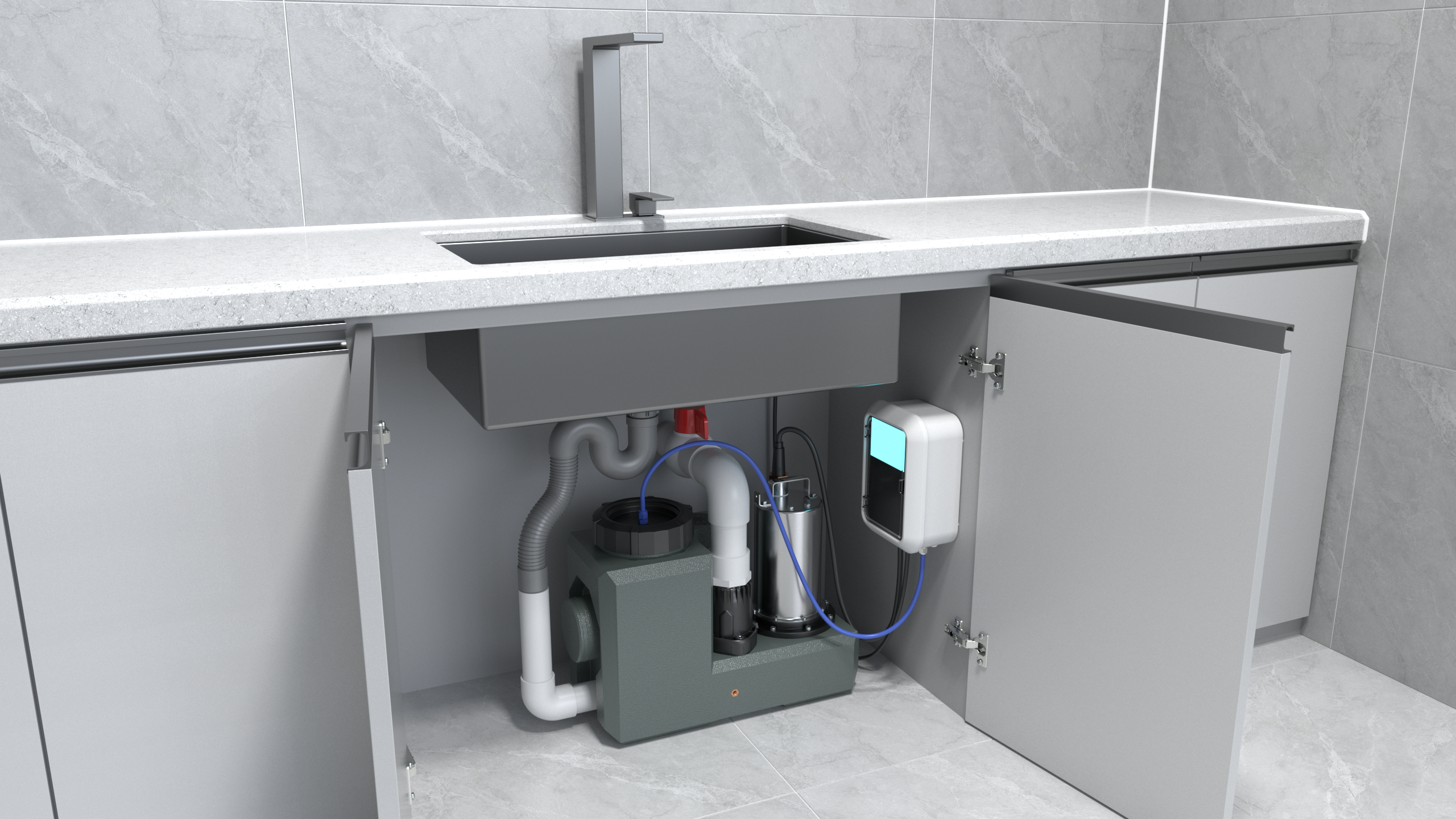 這種情況下,污水提升器是相對優化的方案了,主要是因為在這種辦公或是居家的環境中,我們對于氣味和聲音的要求會比較高,因為是放置在室內的,并且工程量會很小,因為不用拆墻或是重新鋪設管道,只用將機器作為一個中間點,將潔具的排水和主排污管道這一截通過污水提升器連接起來就可以了,通過機器的外在動力將污水推動流向主排污管道中。