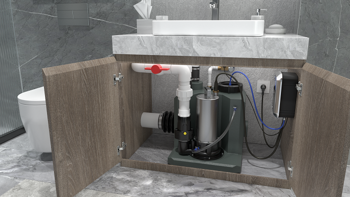 確定好改建衛生間的位置之后,同時需要考慮提升泵的安裝位置,如果在衛生間內安裝,那么可以選擇地面安裝或者墻內安裝。