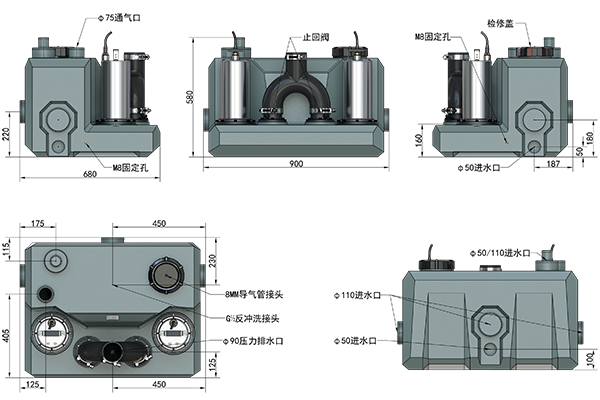 · 入水口:3×φ110,3×φ50,1×φ50/110