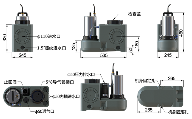 -  別墅、大平層等家用地下室衛生間或廚房等場所的污水提升排放